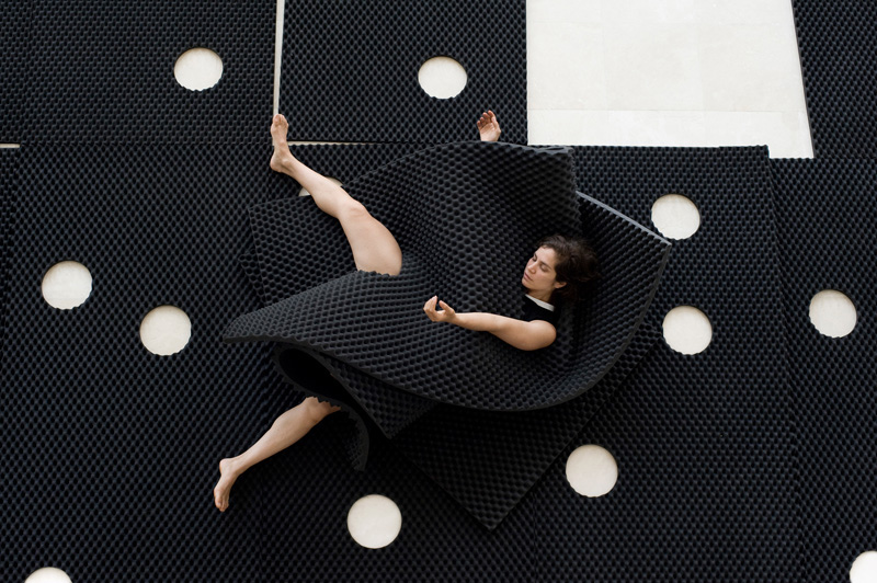 Uma instalação ‘Space/Sound/Performance’ de Kerstin Kussmaul e Jan Burkhardt baseada na música de Erik Satie, a seguir excerto dessa música pelo pianista Alan Marks.