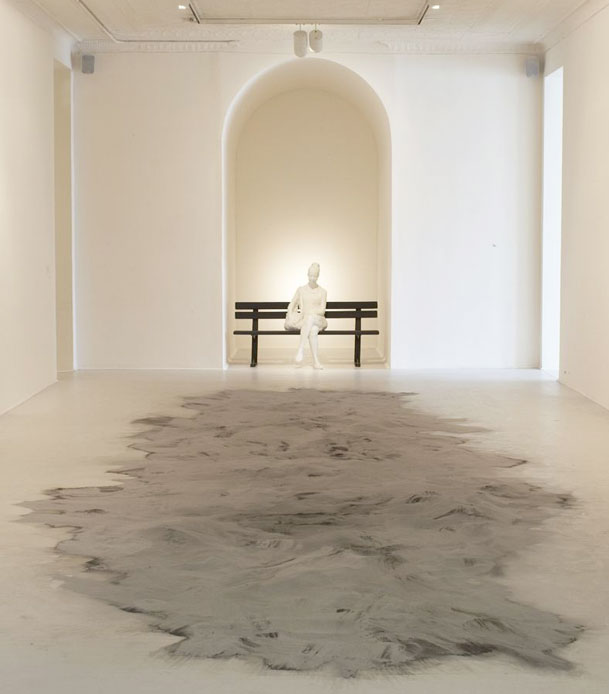 George Segal. Woman on a Park Bench, 1998; Roger Hiorns. Untitled. 2008. Courtesy the artist; Corvi-Mora, London; Marc Foxx, Los Angeles; and Annet Gelink Gallery, Amsterdam. © 2011 MoMA PS1; photo: Matthew Septimus