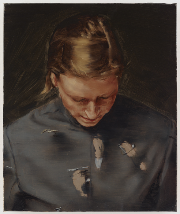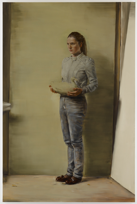 Michaël Borremans The Wooden Skirt 2011 Oil on canvas 78 3/4 x 47 1/4 inches (200 x 120 cm) BORMI0107