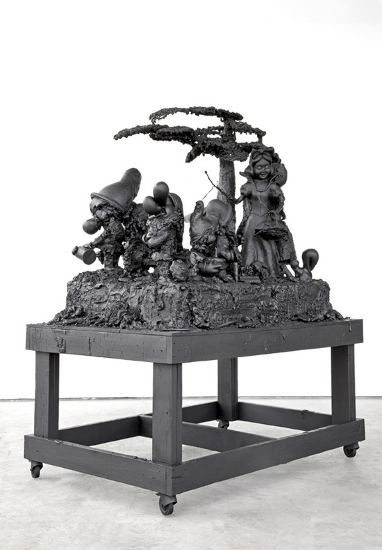The Dwarves, The Forests é uma exposição do artista americano Paul McCarthy (n. Salt Lake City, 1945) patente na galeria Hauser & Wirth, NY. McCarthy é considerado um dos artistas mais influentes e provocadores da América. Esta exposição mostra, pela primeira vez, as esculturas que resultaram do trabalho de pesquisa, que o artista tem vindo a realizar, do conto alemão, do sec. XIX, Branca de Neve (Schneewittchen) e da interpretação moderna de Walt Disney, desse conto, no filme de 1937 – ‘Snow White and the Seven Dwarfs’. Materiais utilizados: Bronze, madeira e maquetes. “I had this thing about exposing the interior of the body” Paul McCarthy. Ler a entrevista via The Guardian.