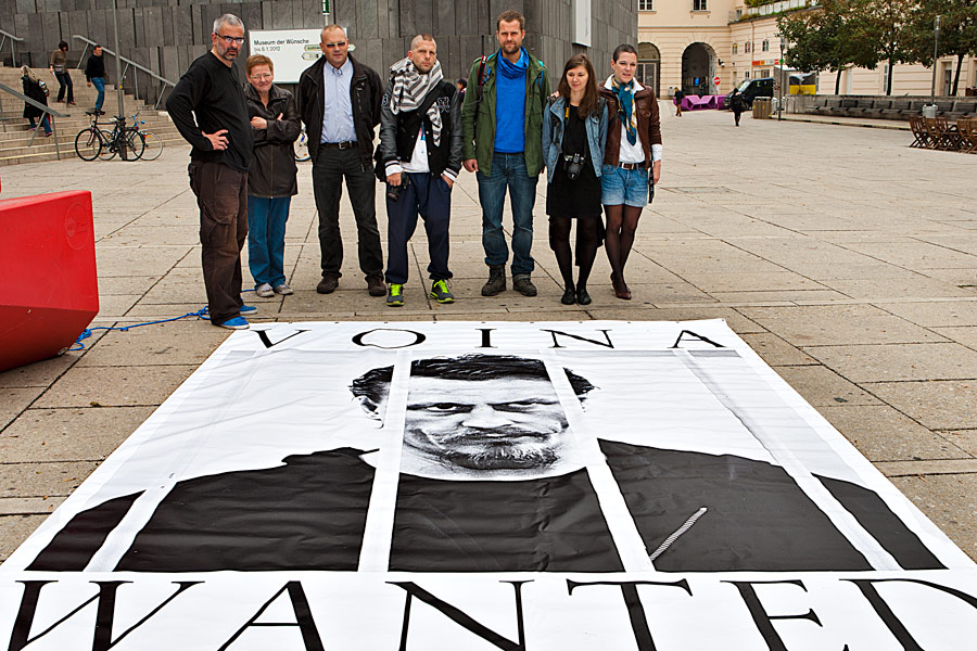 Arte e ativismo político. Um colectivo artístico russo denominado Voina (guerra em russo) promove a utilização de meios ilegais como linguagem e expressão dos valores artísticos e políticos que defendem – anarquia através da arte, neste caso da performance ou protestos de rua, se quisermos. O grupo anunciou ter sido responsável por um ataque efetuado, na noite de final de ano, em St. Petersburg, no qual incendiaram vários carros da polícia. Proclamam que “as suas ações são um presente para todos os prisioneiros políticos da Rússia“.