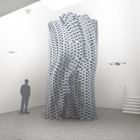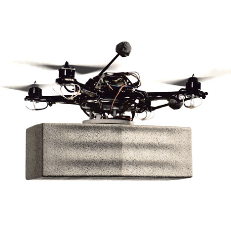 Flight Assembled Architecture/Architectures volantes de Gramazio & Kohler e Raffaello D'Andrea, em colaboração com ETH Zurich. Em exposição no Frac Centre, Orleães, 2011-2012.