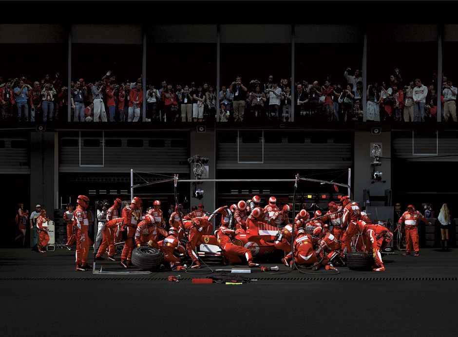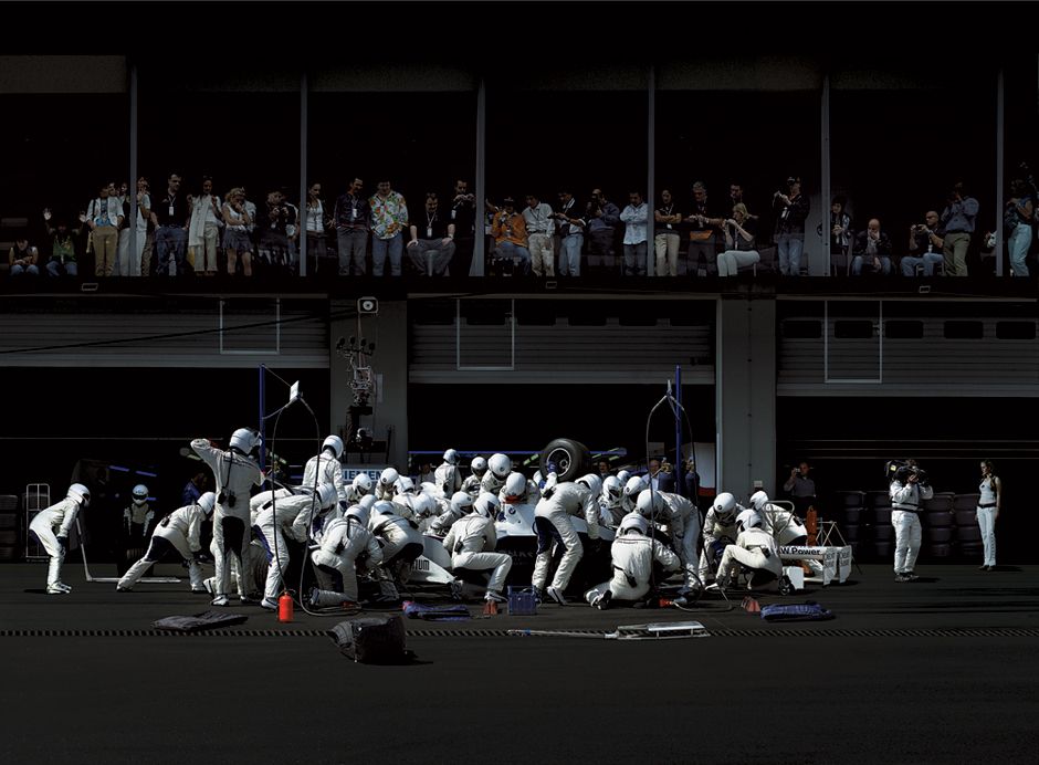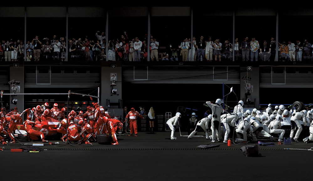 Andreas Gursky, F1 Boxenstopp IV, 2007, C-Print/ Diasec, 223,4 x 609 x 7,3 cm and 188 x 508 x 6,2 cm (GFramed).