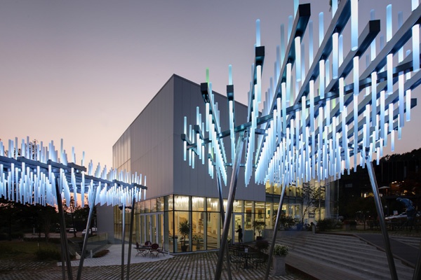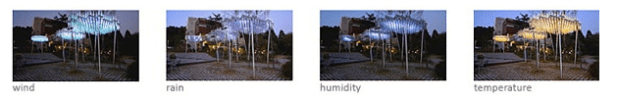 É uma escultura interactiva, de luz e som, que responde ao movimento das pessoas que a cruzam, bem como às alterações do clima. Ganha vida quando algo em movimento se aproxima, produzindo novos sons e tonalidades diferentes, convidando, assim, as pessoas a improvisar e a realizarem as suas próprias performances. Sobre as dinâmicas próprias do clima, por exemplo: ao detectar as mudanças de temperatura, ou o vento e a chuva, a escultura cria essa ligação entre o humano e o ambiente através da luz e do som.