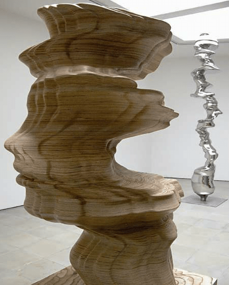Tony Cragg, Wild Relatives, 2005, wood, 135x85x135 e The Fanatics, 2006, stainless steel. © Courtesy Tony Cragg. Photography Niels Schabrod.