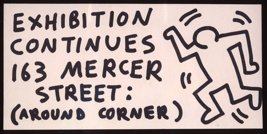 Keith Haring (American, 1958–1990). Untitled (Exhibition Continues 163 Mercer Street), 1982. Felt-tip pen on paper, 11 1/2 x 9 in. (29.5 x 22.9 cm). Collection Keith Haring Foundation. © Keith Haring Foundation