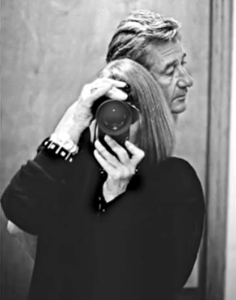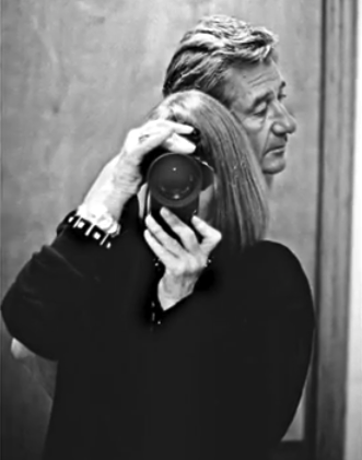 Helmut Newton numa sessão fotográfica com a sua esposa June a assistir © Helmut Newton Estate. Cortesia Réunion des musées nationaux-Grand Palais, 2012.