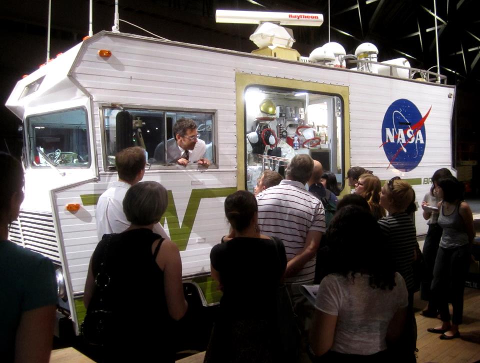Tom Sachs, Space Programme: Mars, installation view, Mary Eannarino in the Mobile Quarantine Facility (MQF)” by Genevieve Hanson, NYC. Park Avenue Armory, 2012. Courtesy Creative Time.