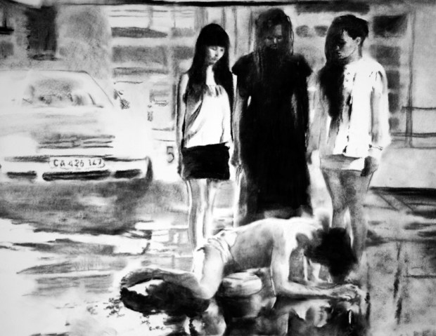 Matthew Hindley, Study II, 2012, Charcoral and chalk pastel on Cartiere Magnani Italia, 100 x 70 cm — presented by BRUNDYN + GONSALVES.