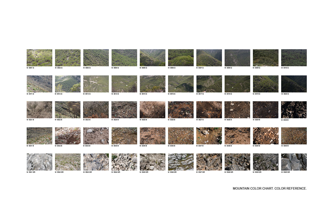 Clara G. Ortega, Mountain color chart. Color reference., 2010, Photograph RC color on dibond, 75 x 110 cm — presented by Alarcón Criado.