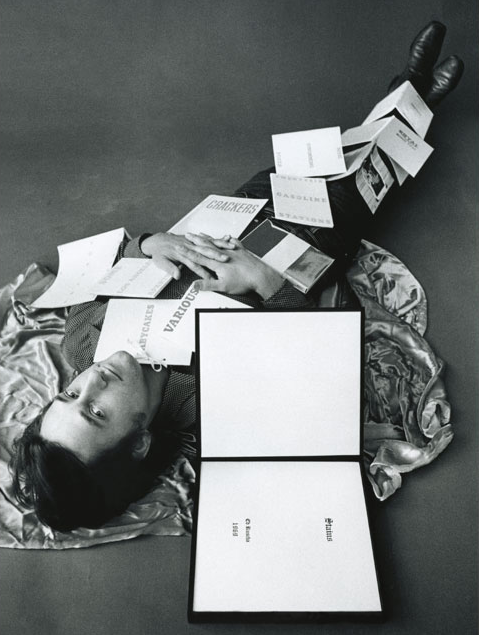 Ed Ruscha com algumas as suas publicações, 1971, fotografia a preto e branco, 35,5 x 27,9 cm. Fotografia de Jerry McMillam, © Ed Ruscha.