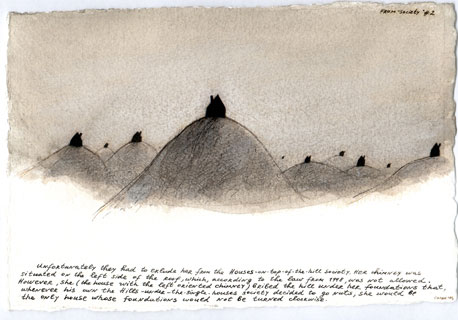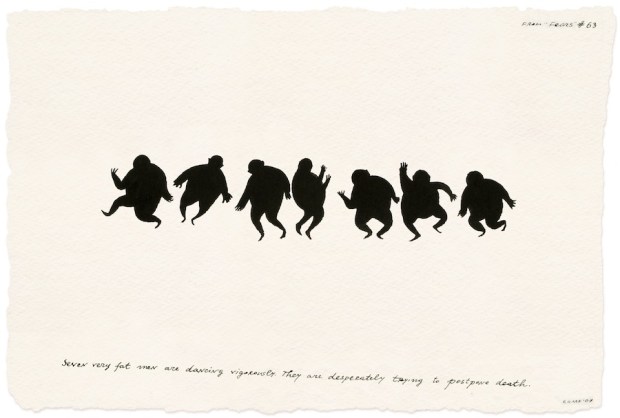 Nedko Solakov, From the series Society # 2, 2003, series of 9 drawings, sepia, black and white ink and wash on paper, 19 x 29 cm each. © Nedko Solakov