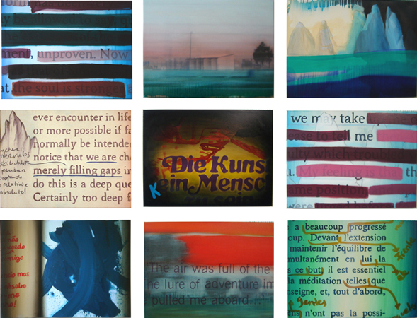 Frau Baader e Ana Luísa Ribeiro – ATM VII, 2010/11. Acrílico e óleo s/ tela (poliptíco), 9 x (60 x 80 cm). Cortesia da artista e de Carlos Carvalho, arte contemporânea.