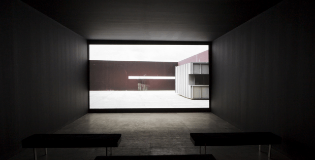 Ângela Ferreira, Collapsible Factory (detalhe) Madeira e outros materiais, dimensões variáveis. Projeção de diapositivos. Instalação múltipla e projeção de diaporamas. Setor J, Fábrica ASA. Cortesia de Guimarães 2012.