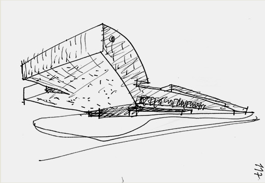 Eduardo Souto Moura, Palácio de Congressos de Palma de Maiorca, Tinta s/papel, 15 x 21 cm, Assinado, 2005. Cortesia de Eduardo Souto Moura e da Galeria João Esteves de Oliveira.