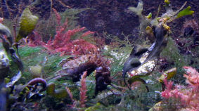 Joana Escoval (Lisboa, 1982) pretende desenvolver um projecto que parte da observação de um aquário de Lisboa, o hoje considerado obsoleto Vasco da Gama (uma espécie de versão “museificada” de aquários e espaços científicos), mais especificamente de dois cavalos-marinhos aí residentes. Segundo a artista, “propõe-se a reflexão sobre um conjunto de situações que ocorrem dentro daquele pequeno espaço subaquático, numa perspectiva essencialmente espacial e pictórica para a construção de composições vídeo – seguindo os ritmos de cor/luz, movimento e textura vividos naquele cenário. Sem procurar uma narrativa ou qualquer ideia de acção documental desta “amostra” de universo marinho, este projecto utilizará o meio audiovisual para expandir e transformar o espaço daquele aquário.”