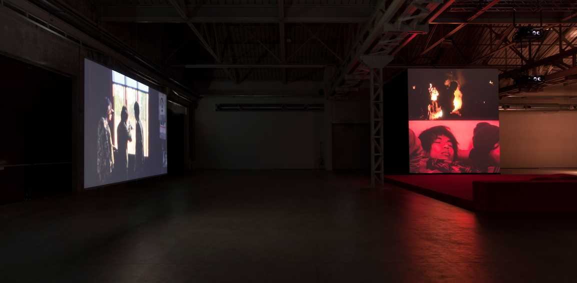 The Thai artist and filmmaker Apichatpong Weerasethakul presents Primitive, a project he started in 2009 and which is being shown in its entirety in a display specially designed for the spaces of Hangar Bicocca. In the almost total darkness of the Shed, the viewer is plunged into a magical, mysterious atmosphere conjured up by images that alternate light and dark, video clips and documentaries, narrative and absolute silence, reality and fiction, past and future.