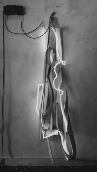 Richard Serra, White Neon Belt Piece 1967, Vulcanized rubber, neon tubing, cable, iron clips, and transformer, 74 13/16 x 19 11/16 x 11 13/16 inches, 190 x 50 x 30 cm Glenstone