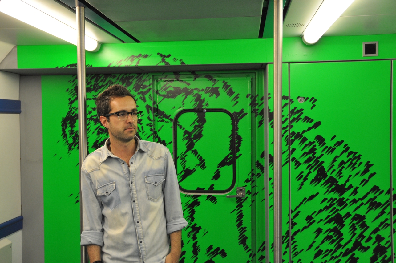 Projecto Janela (P28), intervenção de Bruno Pereira nos comboios da CP, Lisboa, 2013.