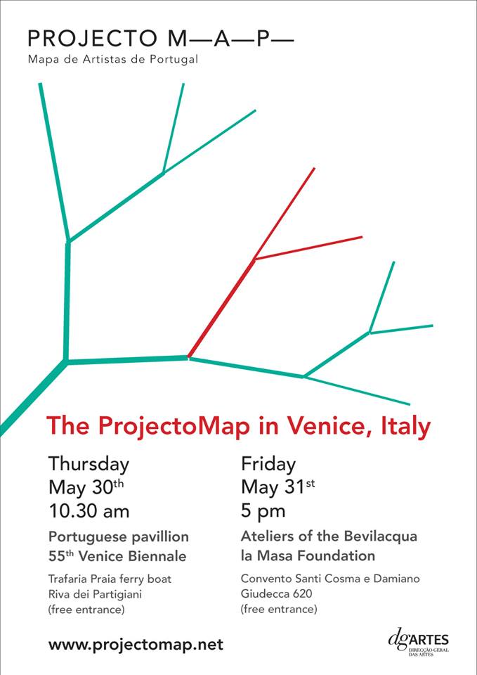 O ProjectoMap será, igualmente, apresentado, no dia 31, no âmbito dos Open Studios & International Talks Atelier BLM 2013, a decorrer na Fondazione Bevilacqua La Masa, Convento Santi Cosma e Damiano, Giudecca, em Veneza. A apresentação incluirá o visionamento de dois filmes sobre o ProjectoMap – o primeiro foi realizado em colaboração com o artista João Paulo Serafim e o segundo conta com as contribuições dos artistas: Ana Pérez-Quiroga, Joana Craveiro, Joana Linda, Cristina Ataíde, Luciana Fina, Miguel Bonneville, Paula Roush, Raquel Melgue, Rodrigo Oliveira, Sara & André e Bárbara Assis Pacheco.