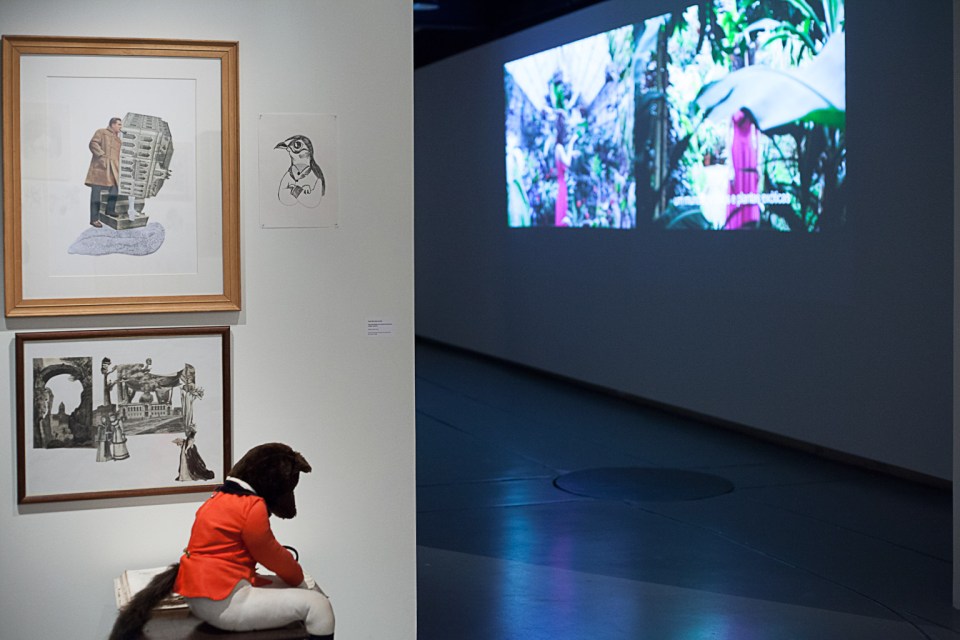 paula roush e maria lusitano, Queer paper gardens/ Estranhos jardins de papel, Museu da Electricidade, Lisboa. Installation with video, mixed media collage salon, publications, drawings and archive, 2012- 2013.