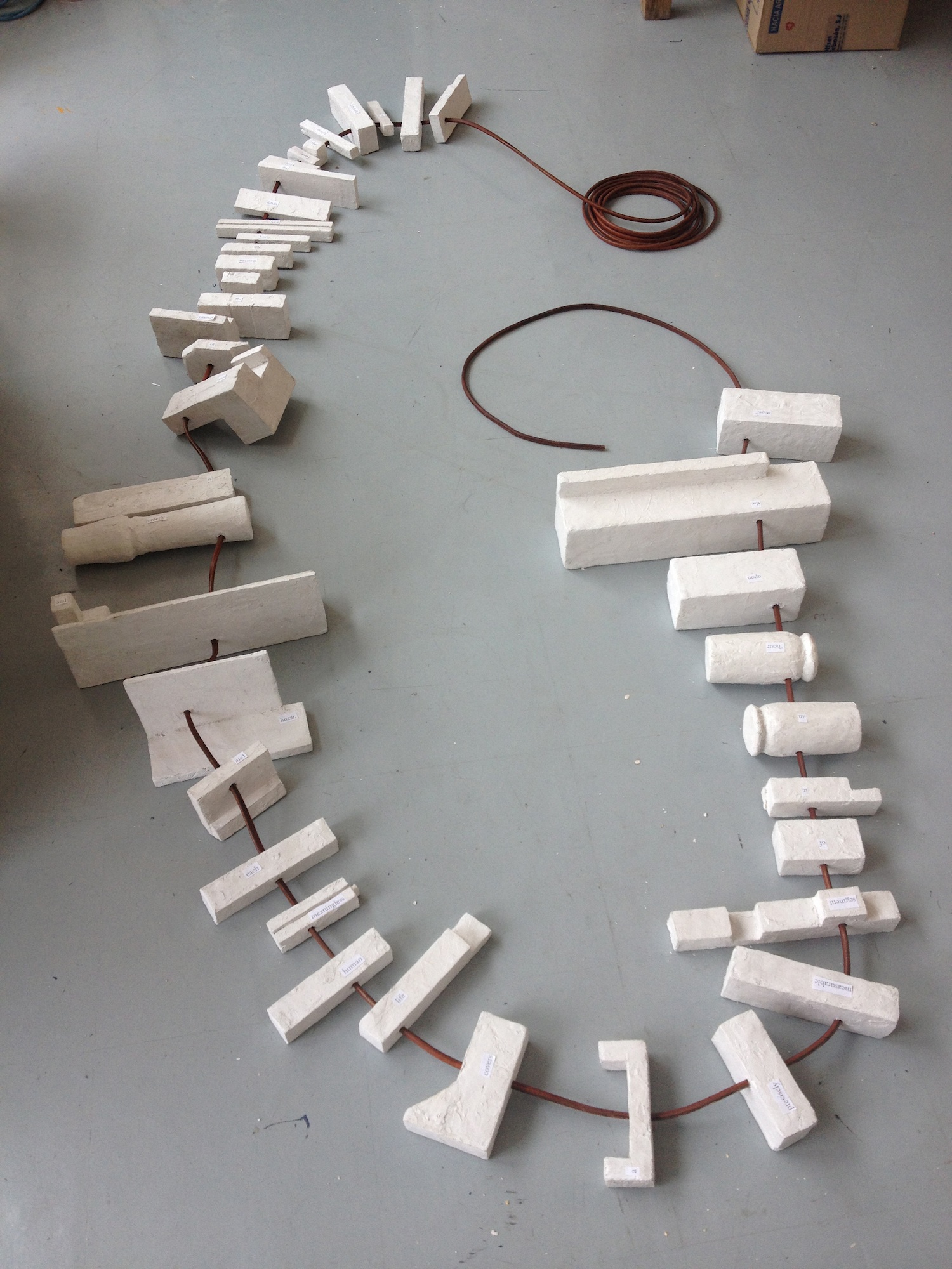 Damián Ortega, History of time / linear thinking 2013. Leather, wood and plaster. Dimensions variable © Damián Ortega. Courtesy Freud Museum London and White Cube