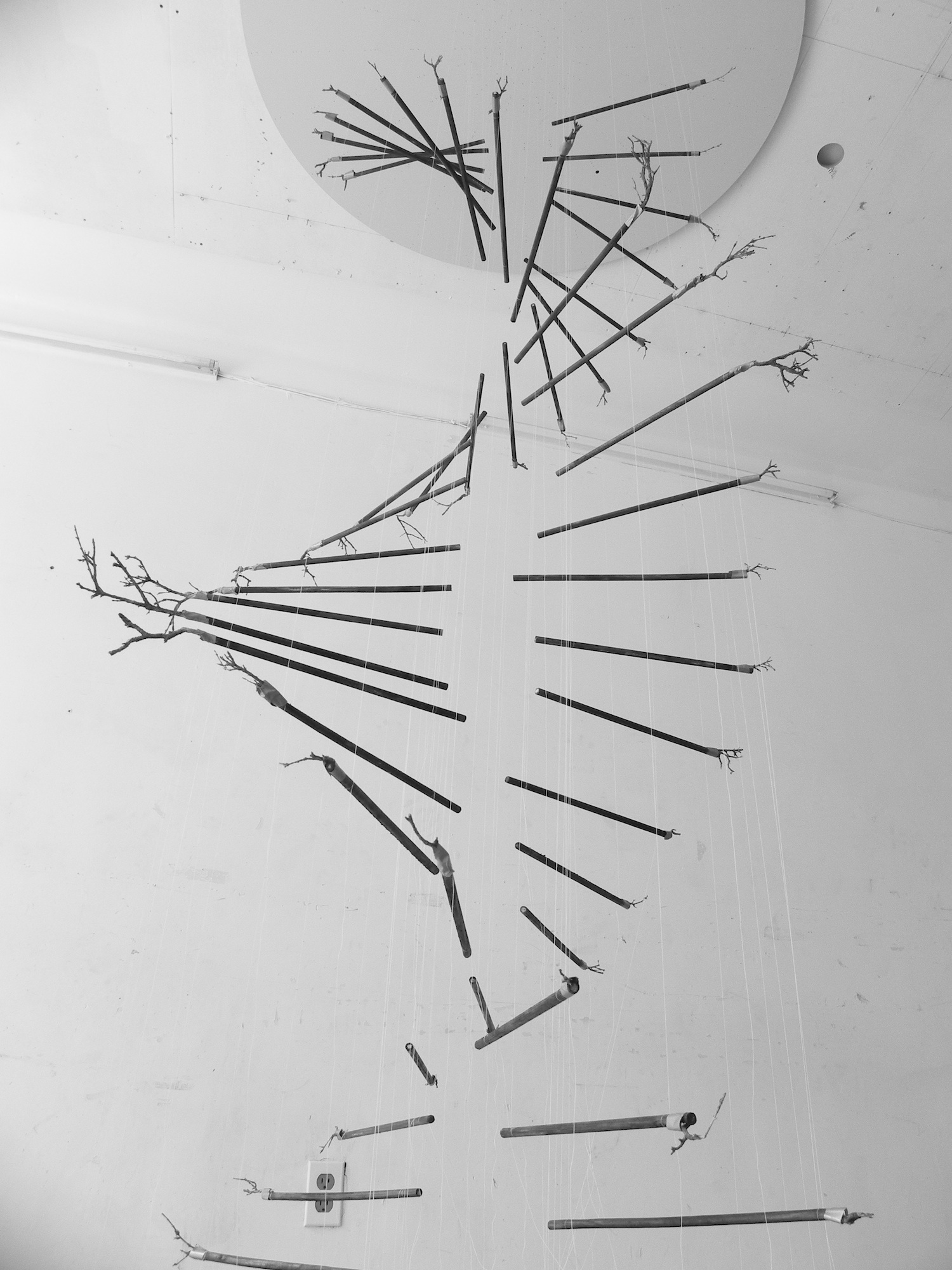 Damián Ortega, Technological DNA, 2013. Installation of wood sticks that were manipulated by chimpanzees, Dimensions variable (120 cm diameter excl. base) © Damián Ortega Courtesy Freud Museum London and White Cube.