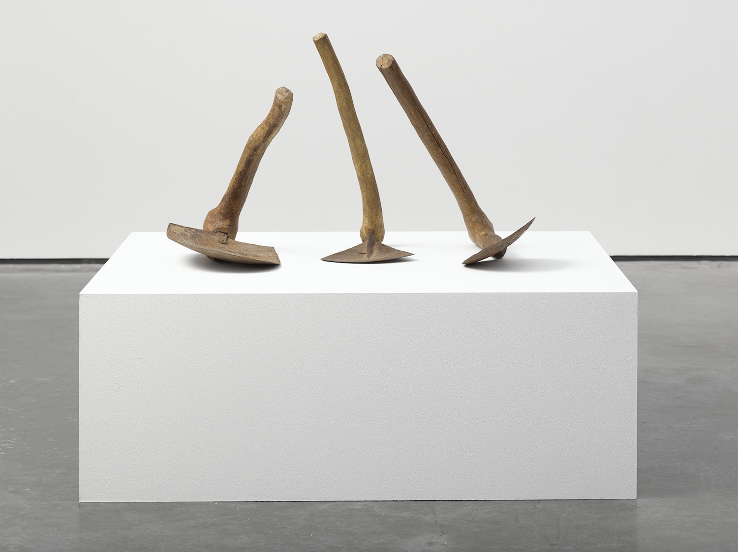 Damián Ortega, Geometric Principle (Basic forms: square, triangle, circle) 2013, 3 plow shovels from Nigeria, Africa, 18 1/2 x 29 15/16 x 18 1/2 in. (47 x 76 x 47 cm) © Damián Ortega. Photo: Ben Westoby. Courtesy White Cube