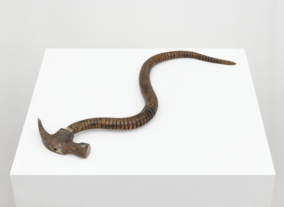 Damián Ortega, Tired Pickaxe: metaphor of the natural, 1997. Wood, metal and leather, 16 x 20 in. (40.6 x 50.8 cm) © Damián Ortega. Photo: Ben Westoby. Courtesy White Cube.