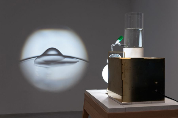 Francisco Tropa, Lantern, 2012. Brass cube, transformer, ventilator, condenser and halogen light bulb, lens. Photo: Marcus Schneider. Courtesy Galerija Gregor Podnar, Berlin / Ljubljana.