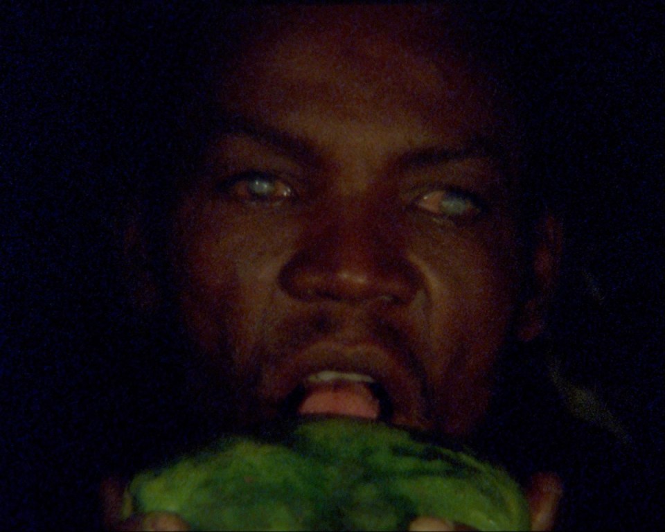João Maria Gusmão + Pedro Paiva, ‘Solar, o Cego a Comer uma Papaia’ – still – (Solar, the Blindman Eating a Papaya), 211, filme, 16mm, cor, sem audio (16mm film, colour, no sound), 2’35”, edição de 6 (edition of 6). Cortesia (Courtesy), Galeria Fortes Vilaça.