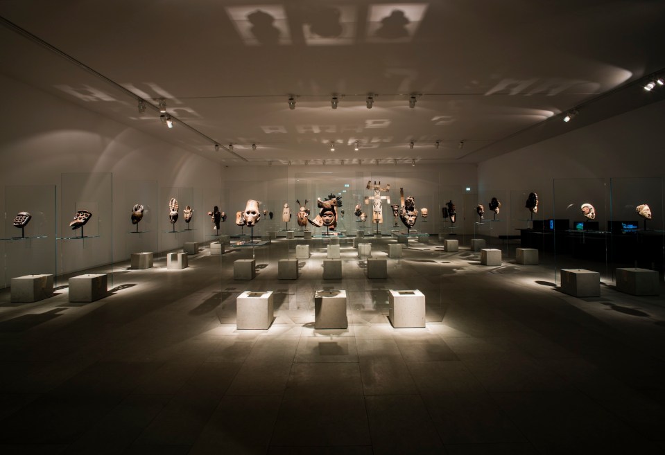 ‘Lições da Escuridão, Sala 3. As Magias (máscaras da colecção de Arte Tribal Africana de José de Guimarães). Cortesia Centro Internacional das Artes José de Guimarães, 2013