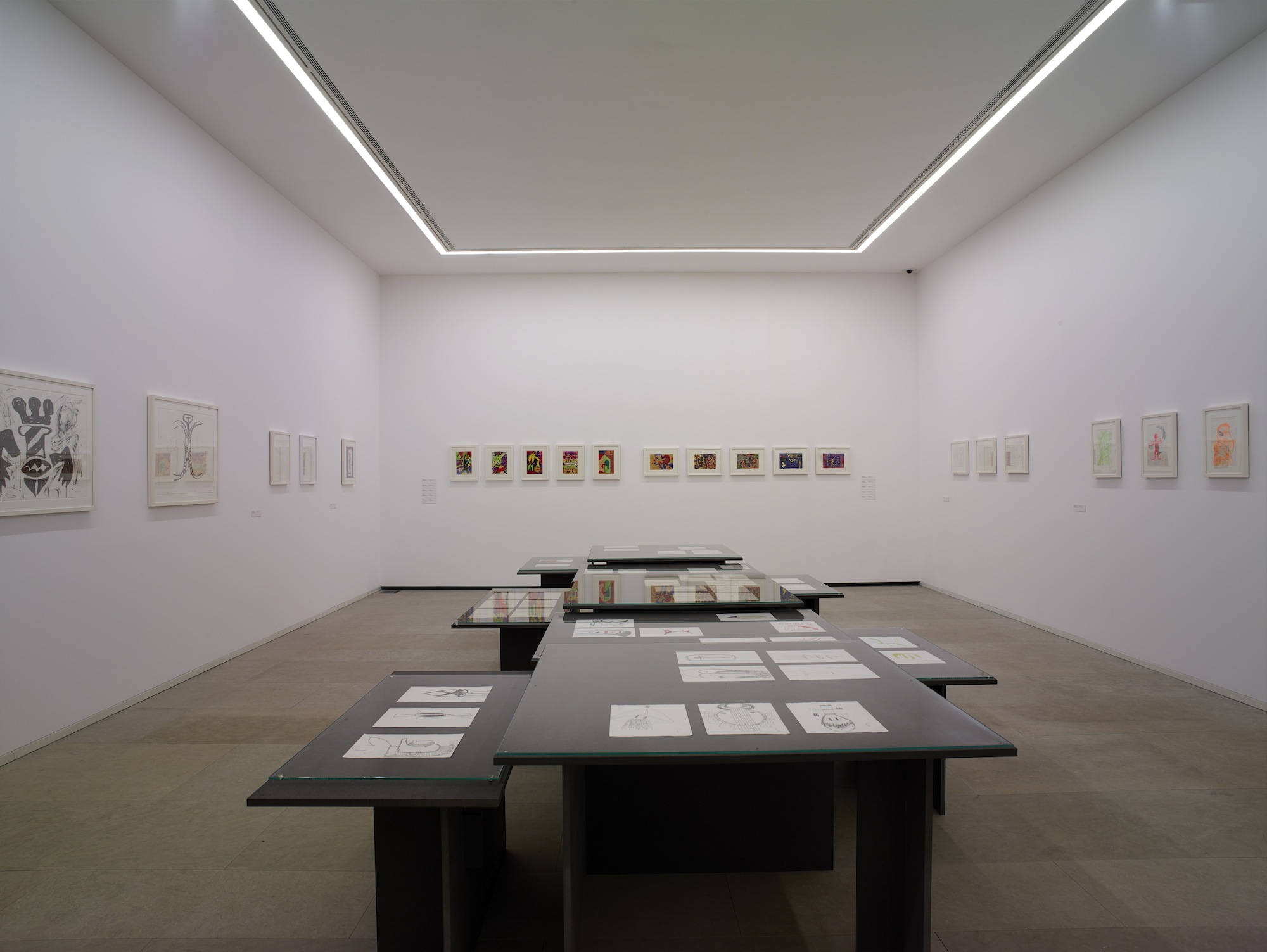 ‘Lições da Escuridão, Sala 4. Gabinete de Desenho. Gruta e Crânio. Desenhos de José de Guimarães. Cortesia Centro Internacional das Artes José de Guimarães, 2013