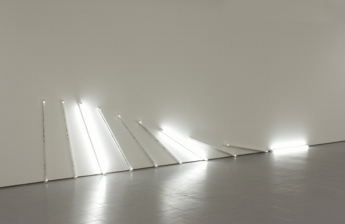 Rui Valério, ‘Wall To Floor’ (peça de parede, lâmpadas fluorescentes e réguas) 2010. © Rui Valério. Cortesia do artista.