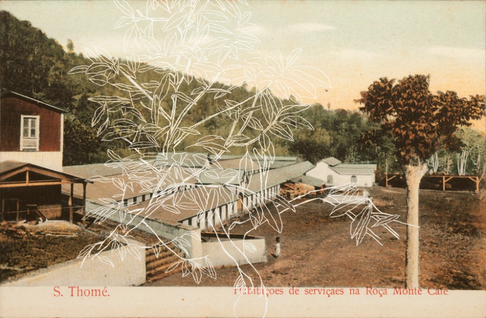 CARLA CABANAS, O que ficou do que foi – Álbum São Tomé e Príncipe, 2013. Intervenção sobre impressão a jacto de tinta. Cortesia Carlos Carvalho Arte Contemporânea, Lisboa. 40 x 60 cm