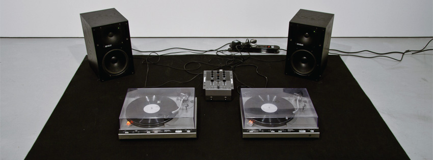 João Onofre, Untitled (Cactuses), 2011. 2 gira-discos com função de repetição automática, colunas ativas, misturador, 2 dubplates com interpretações da canção LILIAC WINE (da autoria de James Shelton, 1950) por Nina Simone (1966) e Jeff Buckley (1994). 40 × 170 × 200 cm.