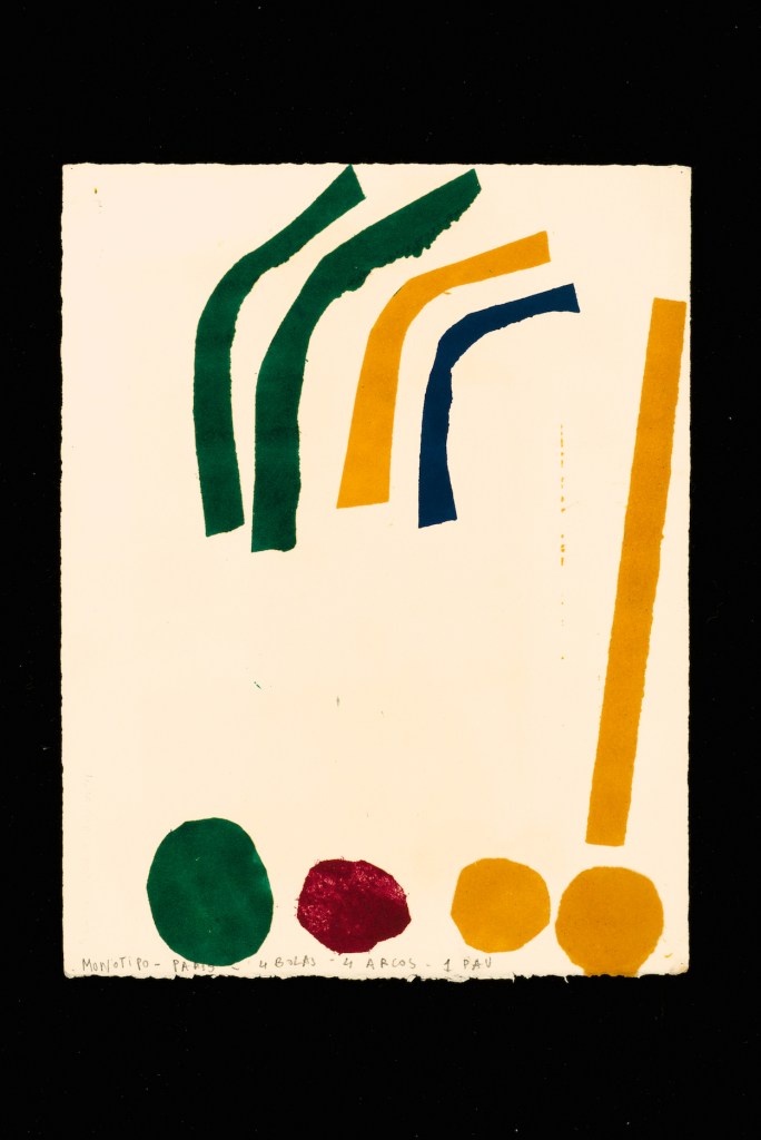 Luisa Correia Pereira, Luisa Correia Pereira 4 bolas – 4 arcos – 1 pau, 1973. Monotipia Créditos: DMF, Lisboa