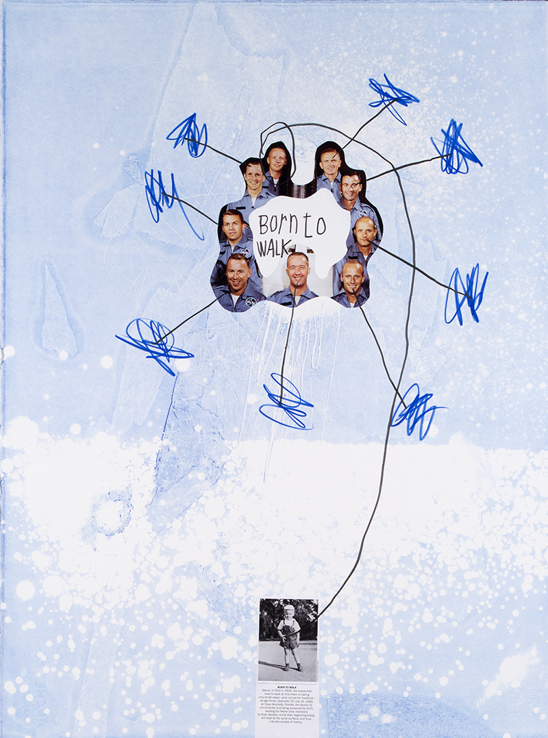 Miguel Palma, Dibujo 14, Up and Down #12, 2014. Collage serigrafia y rotulador sobre papel 77×57 cm.