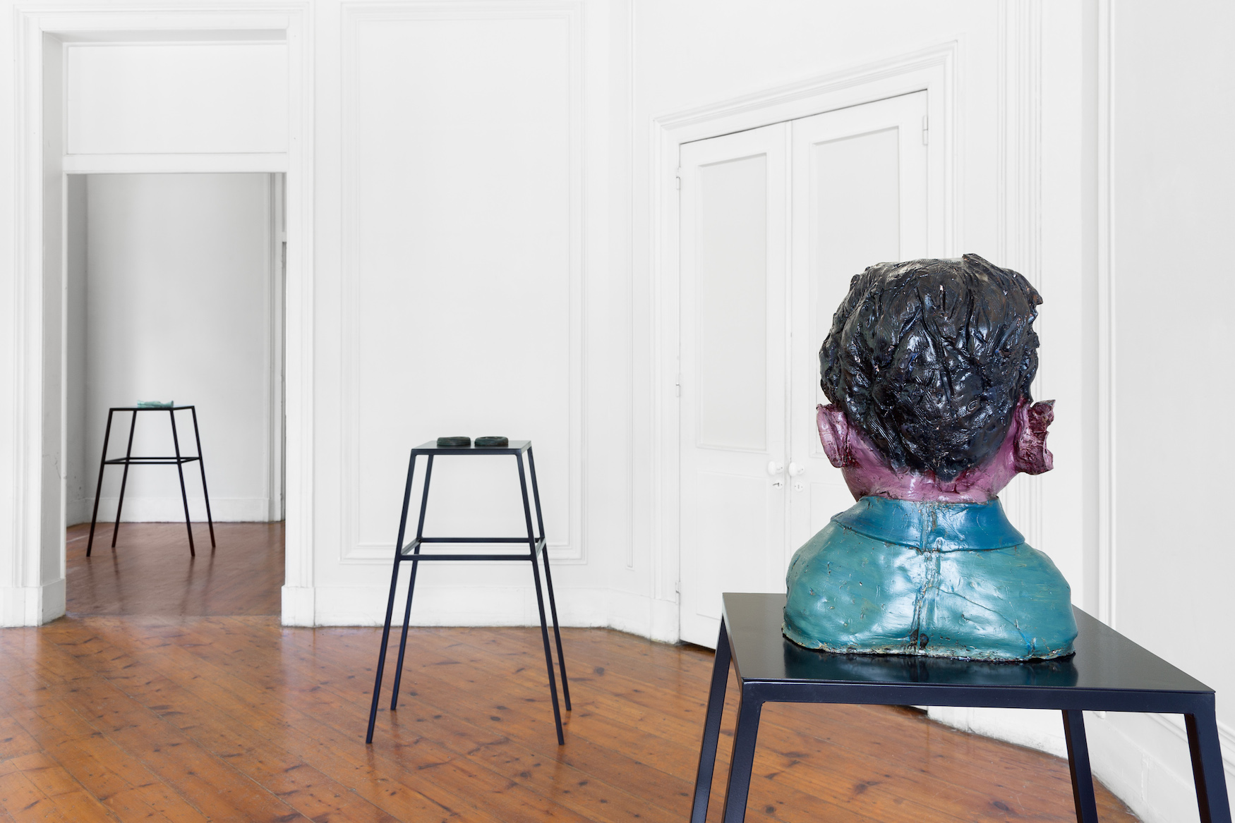 Musa paradisiaca, O sono de Francisco, 2014, Pesos New Fit, 2014 e Cifão, 2014. Breu pintado. Vista de instalação, Kunsthalle Lissabon, Lisboa Foto: Bruno Lopes. Cortesia dos artistas e Kunsthalle Lissabon.