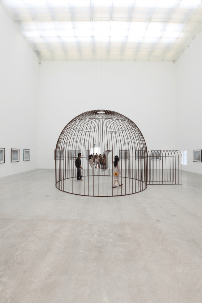 Jeppe Hein, Cage and Mirror, 2011. Stainless steel, mirror and suspension. Courtesy the artist and CAM-FCG.