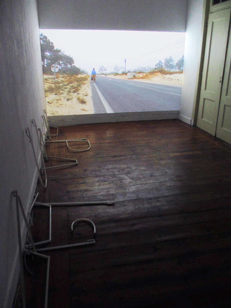 Vista da exposição Art Stabs Power:que se vayan todos!; Paulo Mendes, TRÓIA; Manuel Santos Maia, “numa das suas últimas verdades”, 2013. © Inês Valle.