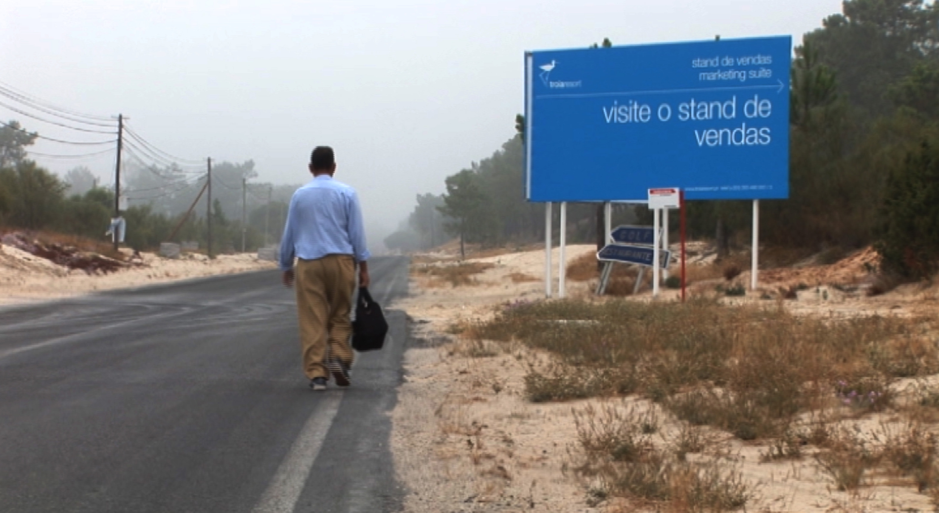 Paulo Mendes, ‘Tróia’. Filmagem em Tróia, em 2008, durante a construção do empreendimento Tróia Resort. Cor, som, vídeo em loop (este vídeo integra o projecto Desvio da série S de Saudade). Cortesia do artista.