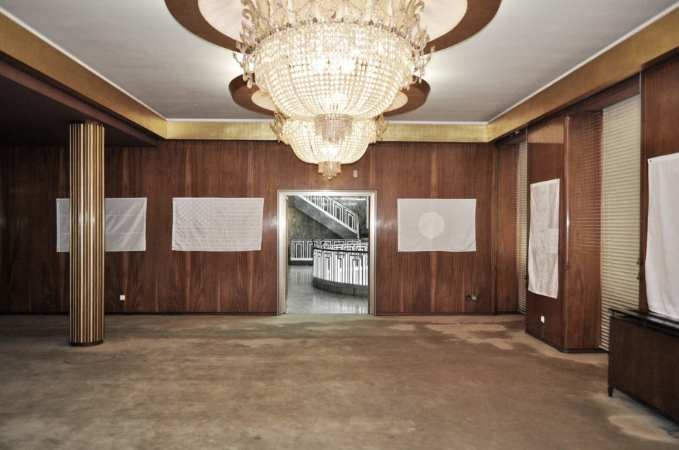 Joao Felino, ‘Flags of the World’. Vista da instalação no MUDE – Museu do Design e da Moda, Lisboa. Cortesia do artista.