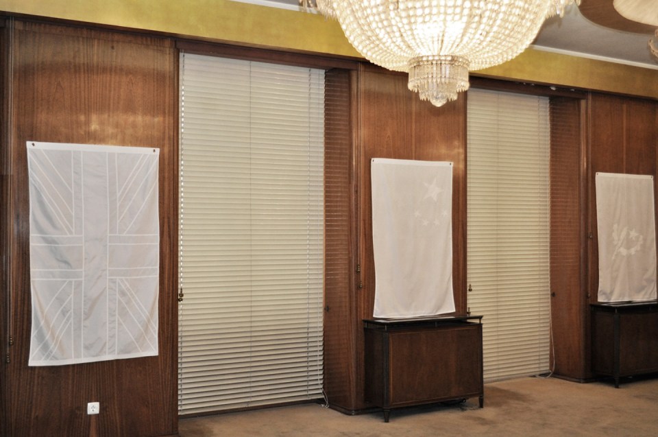 Joao Felino, ‘Flags of the World’. Vista da instalação no MUDE – Museu do Design e da Moda, Lisboa. Cortesia do artista.