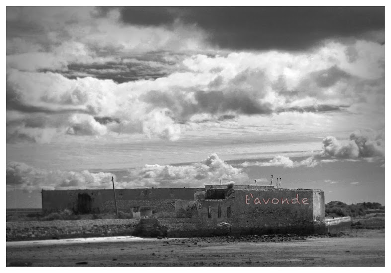 Edgar Massul, t’avonde, 2014. Silves earth on walls of a ruin on the edge of the Ria Formosa lagoon, not built. Cortesia do artista. © Edgar Massul.
