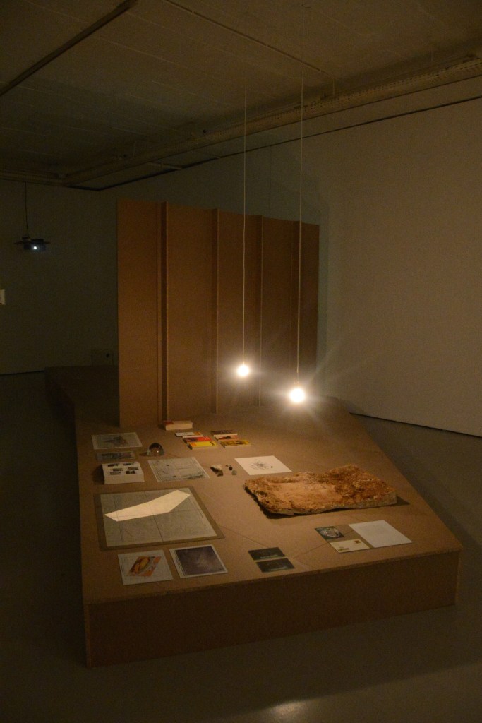 Filipa César, Mined Soil, 2012-14 Elementos expostos | Elements on display : Plataforma em aglomerado | Plywood structure Cortesia da Artista e Cristina Guerra Contemporary Art, Lisboa