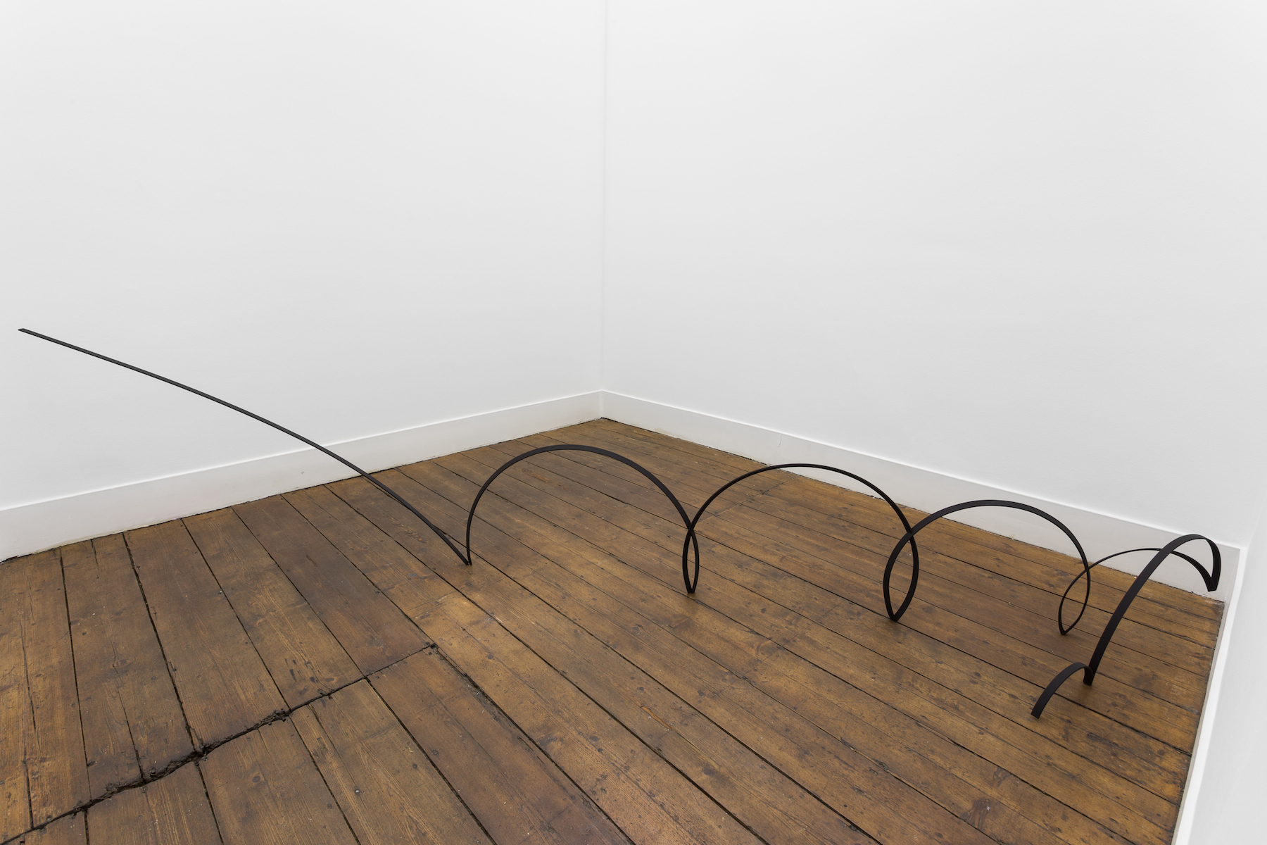 Gonçalo Barreiros, Plof plof, 2014 Ferro pintado Painted iron 93 × 410 × 52 cm. Exposição ‘nosey parker’. Vera Cortês Art Agency.