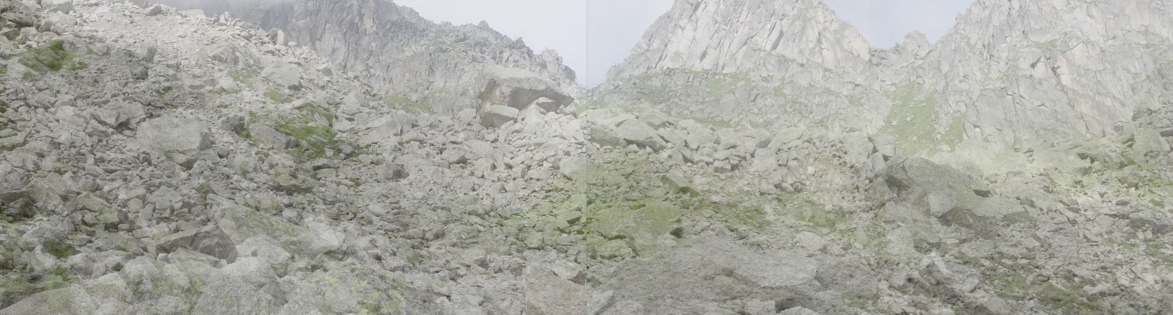 Pedro Vaz, still Tour du Mont-Blanc, 2014 Video instalation, 4k video, color, 42′ 2 channel video projection on plywood, (2x) 185 x 340 cm. Cortesia do artista.