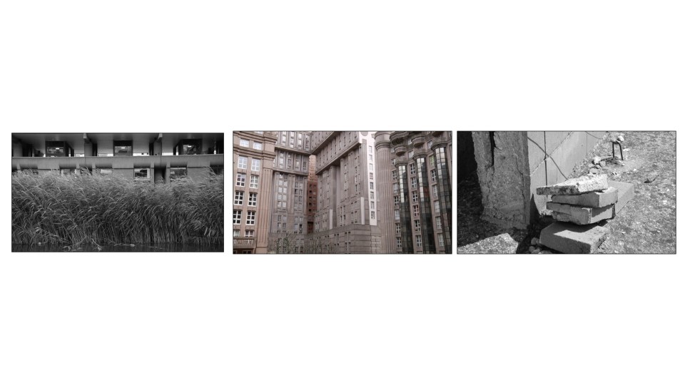 Nuno Cera, ‘Sinfonia do desconhecido’, Instalação-vídeo com 3 canais sincronizados DVCPRO HD; PAL (1080p); 16:9; Cor & p.b.; som Dimensions: Variável; 18 min 30 sec (loop) 2012-2014.