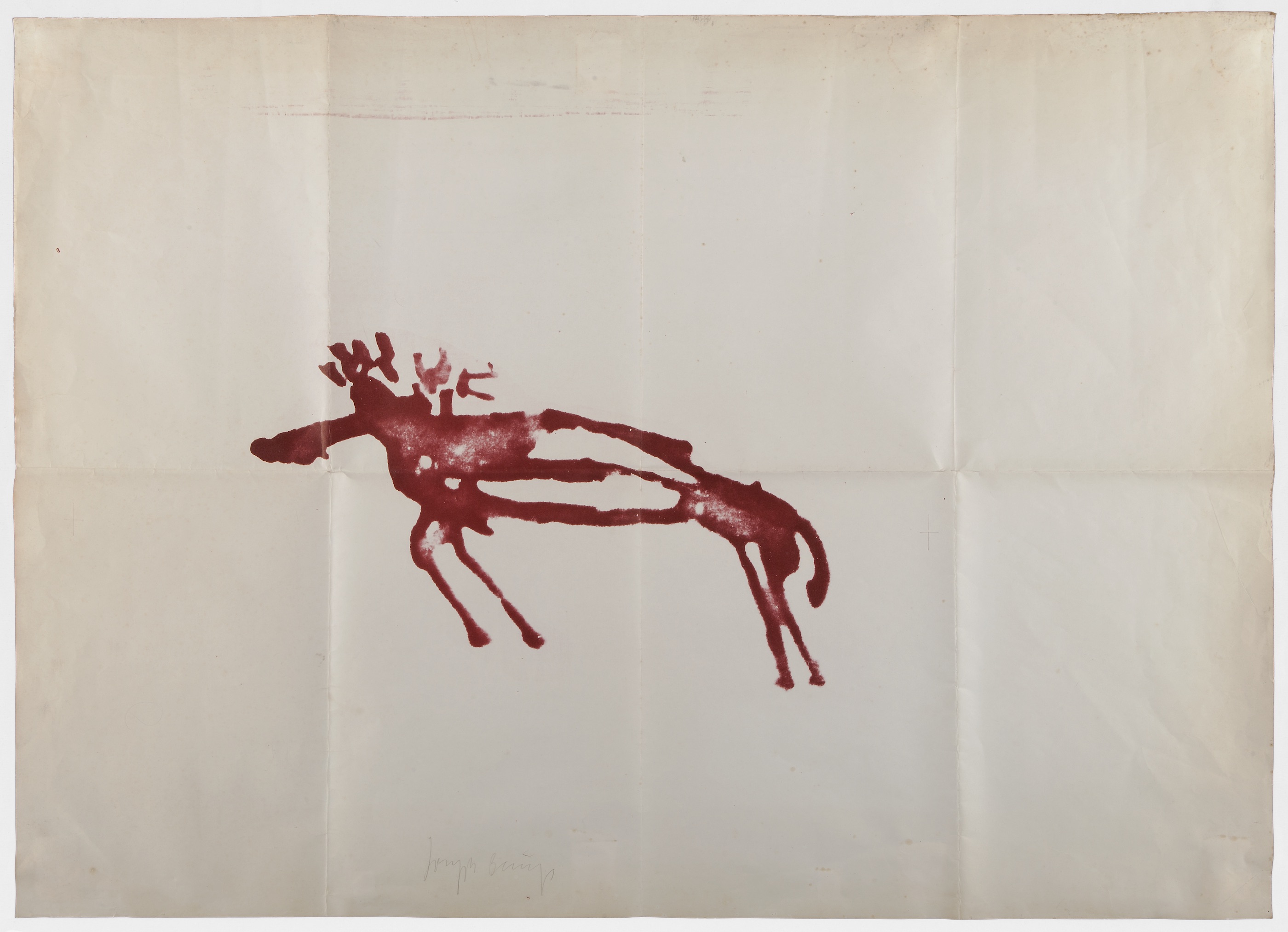 Joseph Beuys, Elch 1975/77. Prova única litográfica sobre papel dobrada 3 vezes e assinada. 73cm x 102 cm. Coleção particular Foto © António Jorge Silva.